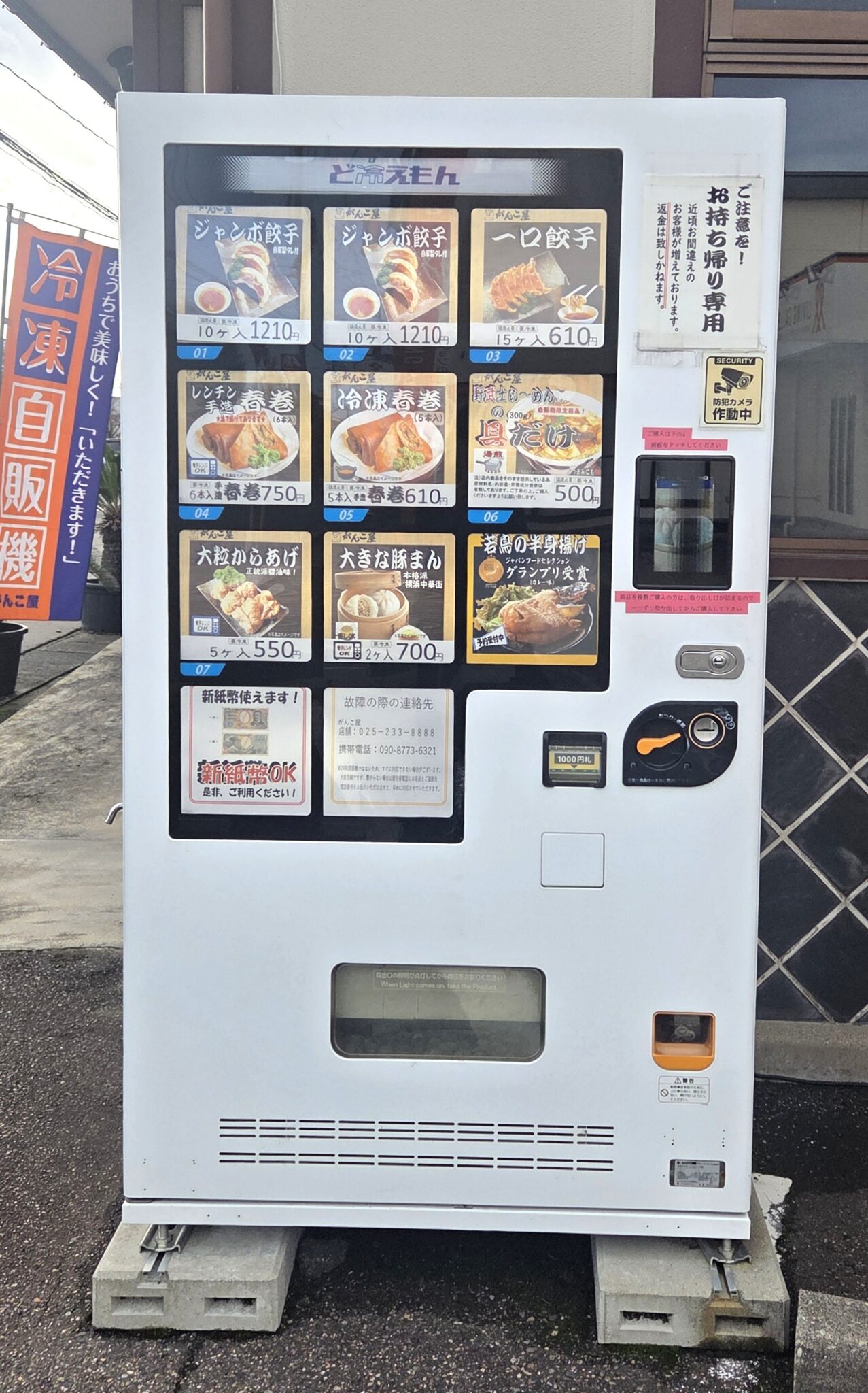がんこ屋:店舗横「惣菜」1. ジャンボ餃子 10個入2. ジャンボ餃子 10個入!3. 一口餃子 15ヶ入4. レンチン春巻 6本入5.冷凍春巻 5本入6. 野武士ら~めんの「具」だけ 300g7. 大粒からあげ 5個入8.大きな豚まん 2個入‼新発売‼